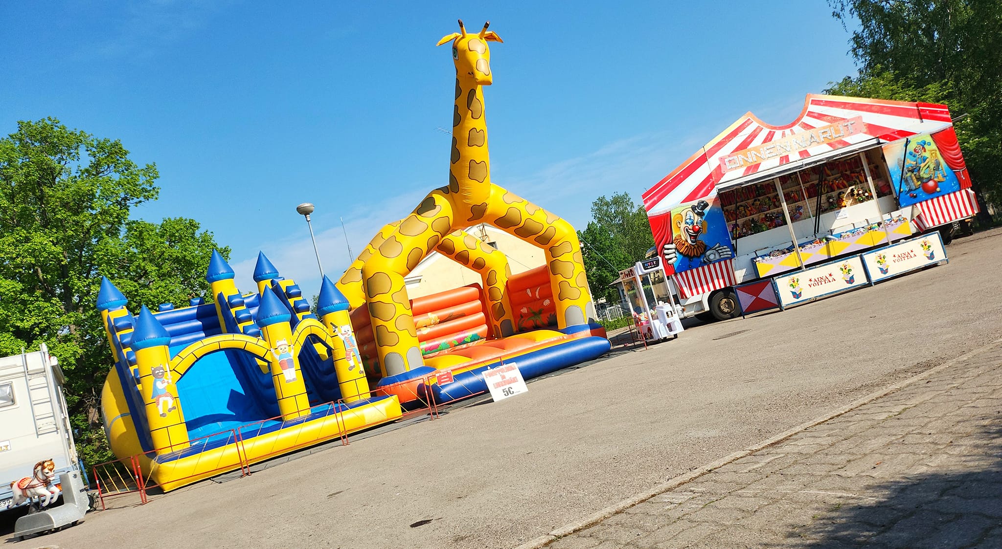 Meiltä löytyy kattava valikoima laitteita ja aktiviteetteja popcorn koneesta pomppulinnaan ja possujunasta erilaisiin kolikkolaitteisiin.